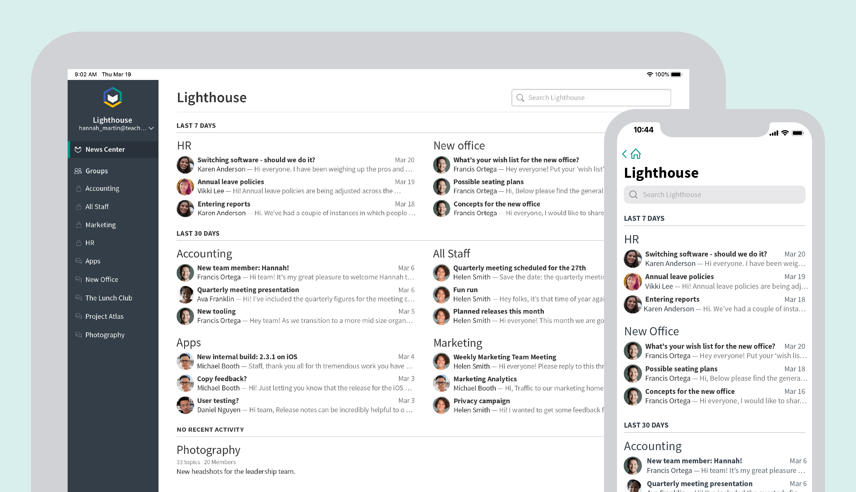 No matter where you work, Topicbox mobile apps keep you up-to-date on the most recent messages from your team.